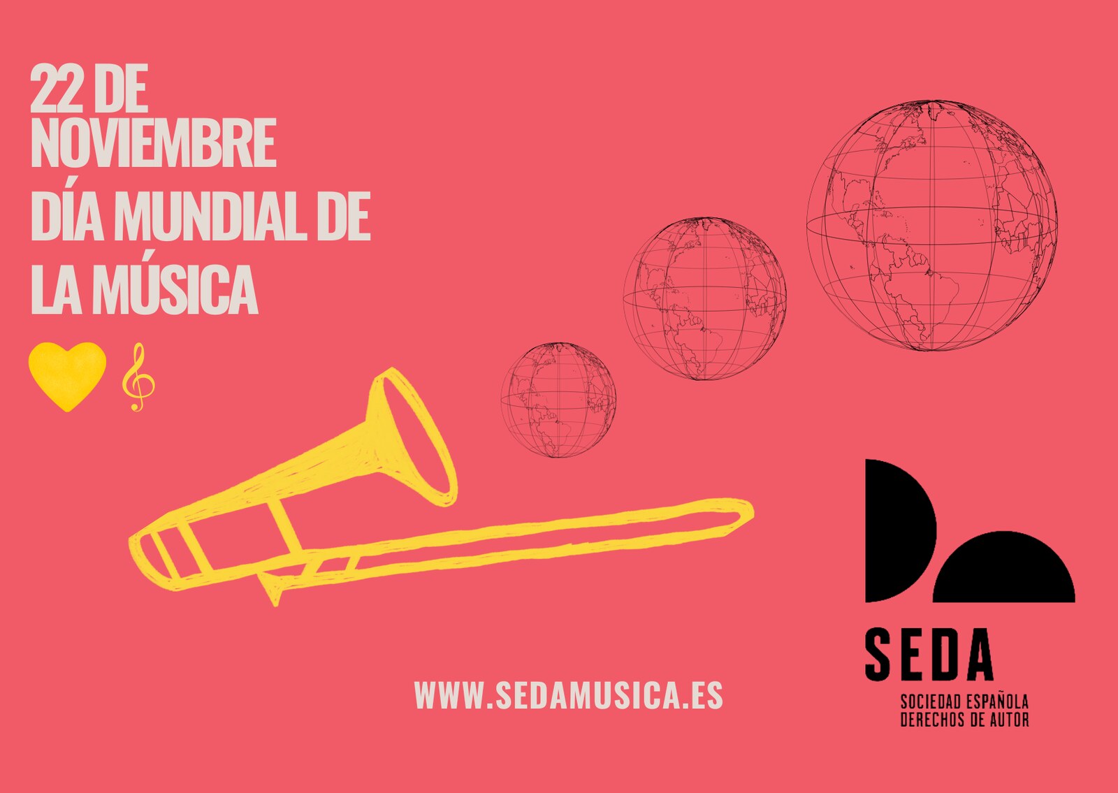 Por todo ello y por muchas más razones que nos guardamos para el próximo año, desde SEDA celebramos, hoy 22 de noviembre, el Dia Mundial de la Música, convencidos de que nuestro trabajo por dignificar a sus compositores, sus obras y sus derechos, crece cada día. ¡Viva la Música!